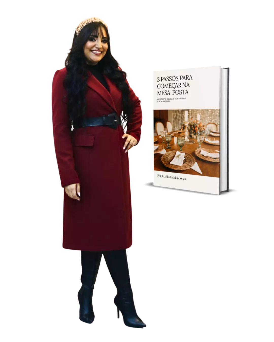 Então esse ebook nasceu de um desejo profundo do meu coração. Depois de anos trabalhando com mesa posta e compartilhando conteúdo nas redes sociais, percebi que muitas pessoas queriam começar, mas não sabiam por onde iniciar: não sabiam quais utensílios comprar, como montar, como combinar cores, nem entendiam o propósito por trás da mesa.